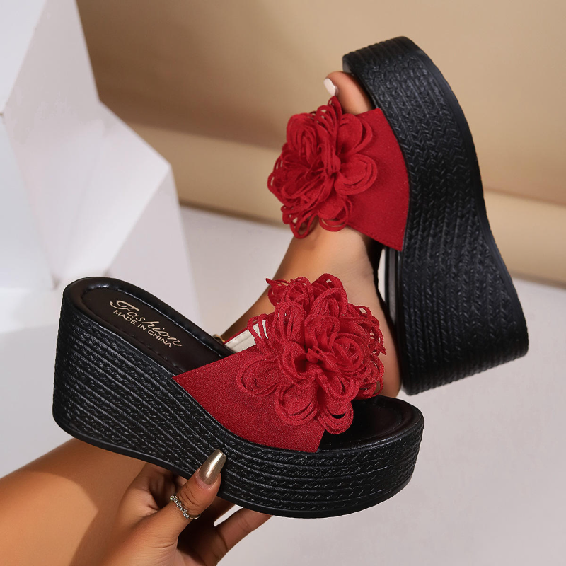 Women's Red Flower Heeled Sandals