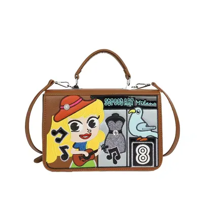 New Retro Printed PU Small Square Bag